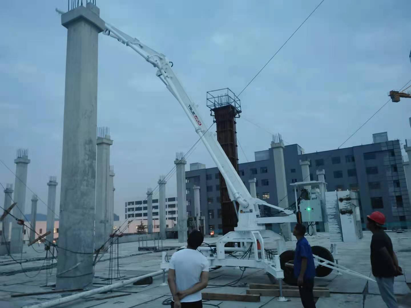 移動(dòng)液壓布料機(jī)是可以移動(dòng)或者履帶式移動(dòng)方式,但是為了施工操作方便,大多移動(dòng)液壓布料機(jī)都采用輪胎式進(jìn)行移動(dòng),在樓面澆筑時(shí),無(wú)需塔機(jī)和牽引機(jī)械進(jìn)行移動(dòng),2人即可推動(dòng)移動(dòng)液壓布料機(jī)進(jìn)行前進(jìn)
