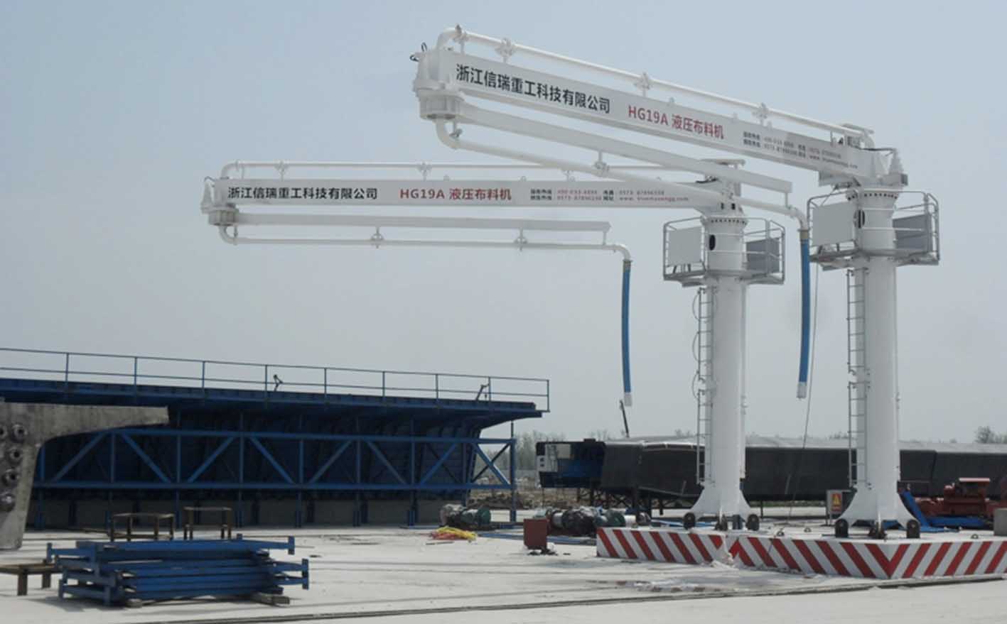 1.本產(chǎn)品為預(yù)制梁場專用布料機(jī),臂架為輕量化設(shè)計(jì),兩節(jié)臂水平旋轉(zhuǎn),全液壓驅(qū)動(dòng),結(jié)構(gòu)